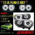 送料無料 ダッジ チャレンジャー 08-14y 特注日本光軸仕様 超高輝度 LEDイカリング プロジェクター ヘッドライト ブラック ハロゲン車用