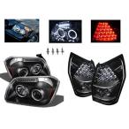 ダッジ マグナム インナーブラック LEDイカリングプロジェクターフロント ヘッドライト 日本光軸仕様 LEDテールランプ 左右 セット 送込