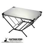 キャプテンスタッグ アウトドアテーブル テーブル ステンレス マルチラックテーブル 風防付 ゴトク付 ペグ付 収納バッグ付 エンボス加工 UC-596