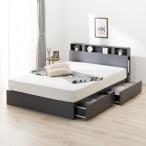 ベッド ダブル 2層ポケットコイルマットレス付 照明 宮付 収納ベッド Rizon ライゾン 送料無料