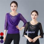 ラテンダンス トップス レディース 社交ダンス 日常着 ダンスTシャツ モダンダンス レッスン着 練習競技 デモ衣装 ダンスウェア 踊りブラウス