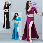 ベリーダンス衣装 セット衣装 無地 レッスン着 可愛い ベリーダンス 衣装セット インナーパンツ付き 紐 ロング丈 スカート ダブルスリット 5分袖 Vネック トッ