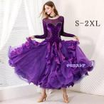 高品質 社交ダンス ドレス 社交ダンス衣装 長袖 初心者 練習着 広がる裾 発表会用 ワンピース パーティー スタンダード パープル S M L XL 2XL