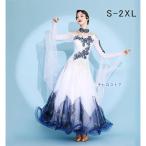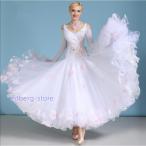 高品質 社交ダンス ドレス 社交ダンス衣装 ワンピース 長袖 広がる裾 花柄 豪? レッスン着 発表会 競技着 練習着 演出用 スタンダード ホワイト S M L XL 2XL
