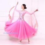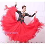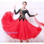 高品質 社交ダンス ドレス 社交ダンス衣装 長袖 初心者 練習着 広がる裾 発表会用 ワンピース パーティー スタンダード レッスン着 発表会 競技着 演出用 開場
