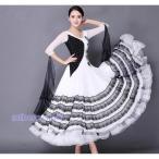 社交ダンス ドレス フリル モダンドレス ラインストーン ビジュー 社交ダンス衣装 半袖 長袖 大きい裾 モダン スタンダード ワルツ レディース ワンピース