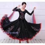 高品質 社交ダンス ドレス 長袖 スタンダード 社交ダンス衣装 ワンピース 黒 広がる裾 ワンピース スタンダード レッスン着 発表会 競技着 練習着 演出用