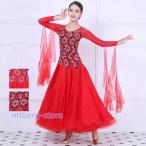 社交ダンスドレスレディース モダンダンス ロング丈ワンピース 長袖 レッスン着 フラメンコ ワルツ専用ドレス スタンダード練習着