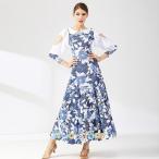 【5%OFFクーポン】社交ダンスドレス お花柄 社交ダンス練習着 フラメンコ ボールルーム衣装 ワルツドレス 広がる裾 ダンスドレス 社交ダンス衣装 モダンダンス衣装 レッスン着 スタンダード デモ用ドレス おしゃれ 高級感 演出服 デモ用 発表会 舞台 広がる裾 海外通販