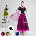 社交ダンス ドレス フリル モダンドレス ラインストーン ビジュー 社交ダンス衣装 半袖 長袖 大きい裾 モダン スタンダード ワルツ レディース ワンピース