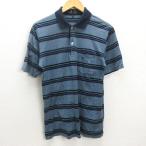 Dunhill ダンヒル 90s イタリア製 オールド ボーダー柄 半袖 ポロシャツ M ネイビー メンズ 古着 中古