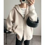 パーカー マシュマロ触感!ロングシーズン使えるダンボールbigシルエット オーバーサイズ ジップパーカー レディース