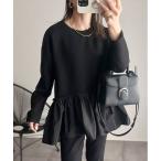 トレーナー スウェット 異素材 ペプラム ダンボール プルオーバー レディース