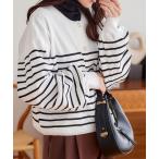 ニット セーター ダンボールニットボーダーカーディガン レディース