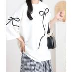tシャツ ダンボール リボンコード刺繍BIGT 7分袖 レディース