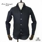 Maria Santangelo マリアサンタンジェロ リネン シャツ 長袖 麻 メンズ MARCO 背ダーツ カッタウェイ セミワイドカラー ブラック 黒 イタリア 正規品