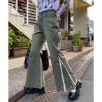 ジーンズ デニム デニムパンツ レースダーツフレアデニムパンツ レディース