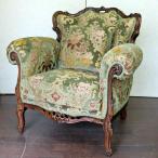 イタリア 1Pソファ 金華山 グリーンアームチェア 1人がけ ソファ 猫脚 完成品 木製 アンティーク オルテンシア ヴェローナアンティーク