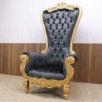 玉座 王様椅子 キングチェア アンティーク エレガント アームチェア スタジオ 什器 撮影 ロココ 1人掛け 一人用 ハイバック ブラック 黒本革 1001-S-10L17B