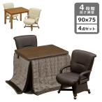 爆買 こたつテーブルセット ハイタイプ 4点セット 90cm幅 こたつテーブル 長方形 2人用 ダイニングこたつセット こたつ4点セット キャスター付き 回転式