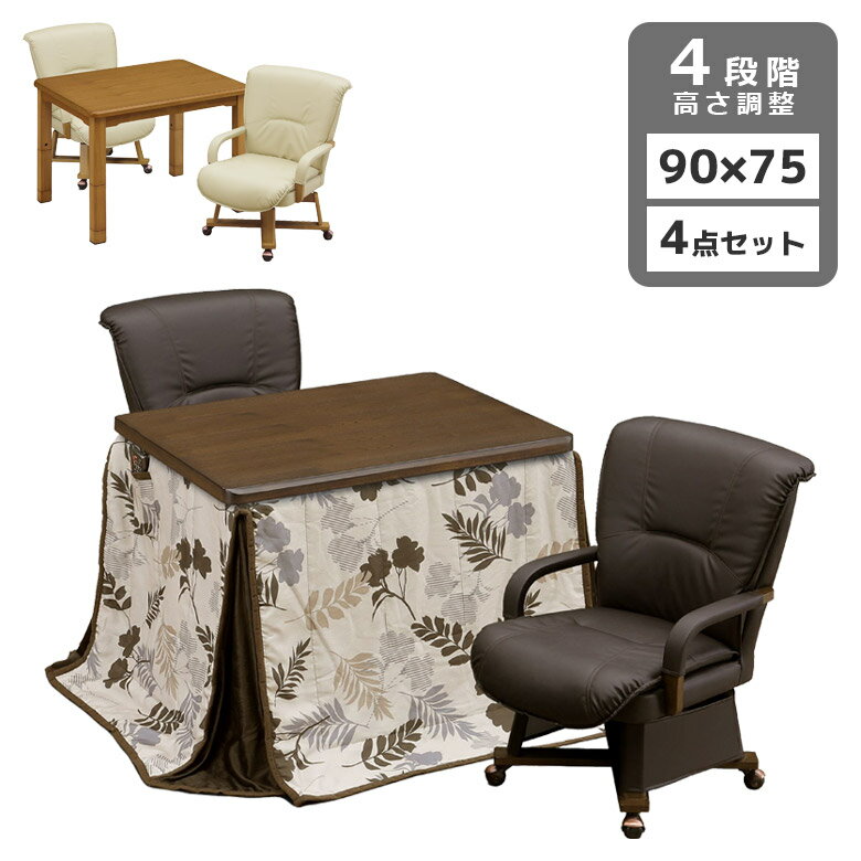 【全商品に使える11%offクーポンあり!!】 こたつテーブルセット 2人用 こたつ ハイタイプ 4点セット 90cm幅 ダイニングこたつセット こたつ4点セット キャスター付き こたつチェア 回転式 肘掛け ブラウン テーブル 暖房機器 速熱 即暖 こたつ 90 暖卓