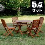 爆買 ガーデンテーブルセット 木製 5点 セット ガーデンテーブル ガーデンチェアー 折りたたみ 4人 庭 ダイニング 屋外 野