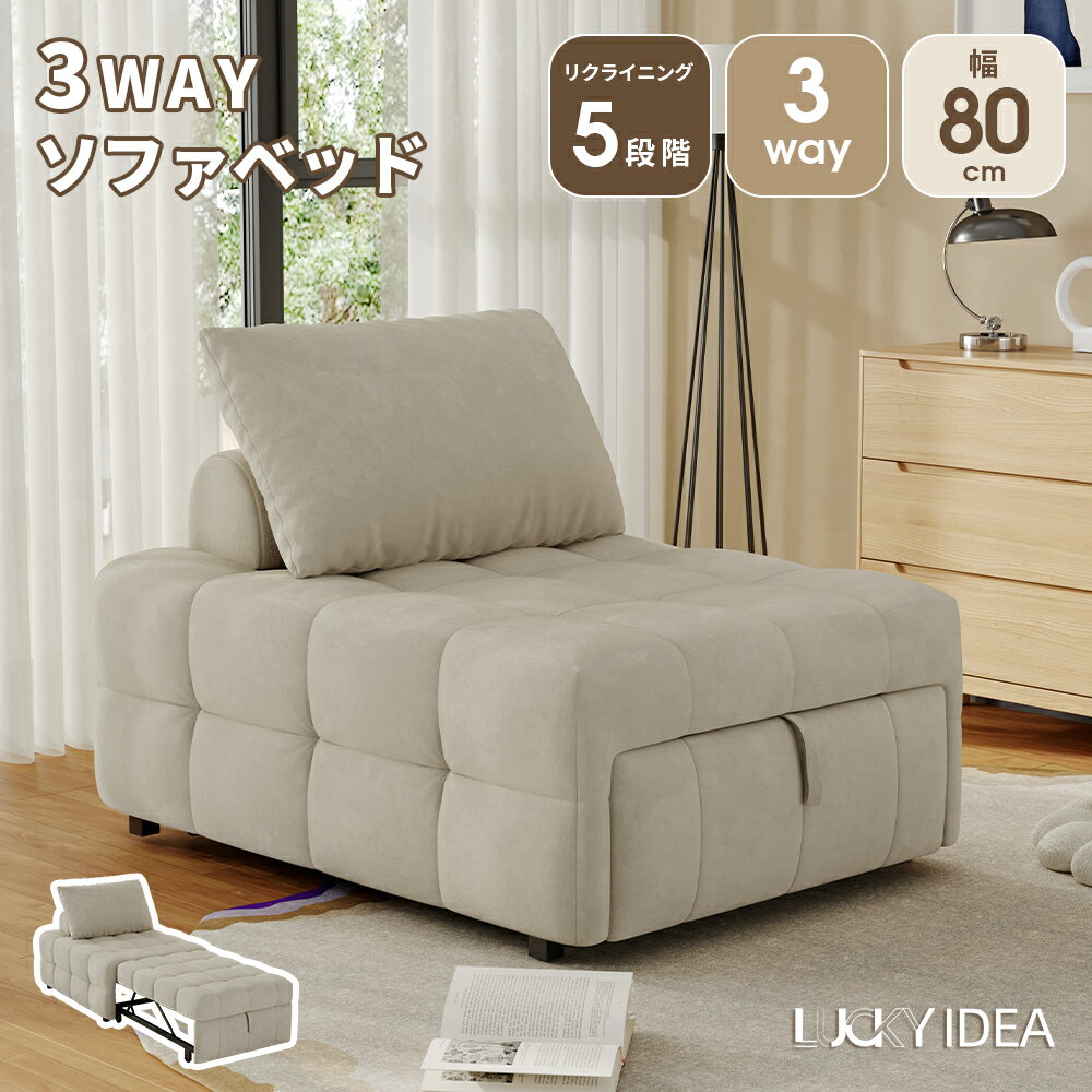 【10%OFFクーポン配布中】【Lucky idea 】引き出し式ソファベッド 簡易寝台 リクライニングチェア 3WAYで便利 コンパクト 高耐久ファブリック 折りたたみ式フロアソファ組立不要 クッション付き 可動背もたれ 完成品 (ホワイト) 幅: 80cm