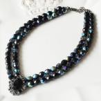 ブラック 2連 チョーカー チェコ ビーズ 黒 ゴスロリ