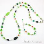ロノティコ Ronotico チェコビーズ パール ロングネックレス & ブレスレット セットアップ グリーンL bn-26L