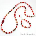 ロノティコ Ronotico チェコビーズ パール ロングネックレス & ブレスレット セットアップ レッドL bn-24L