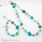 ロノティコ Ronotico チェコビーズ パール ネックレス & ブレスレット セットアップ ブルーS bn-25S