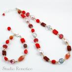 ロノティコ Ronotico チェコビーズ パール ネックレス & ブレスレット セットアップ レッドS bn-24S