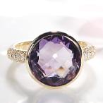 K18YG アメジスト ダイヤモンド リング 紫水晶 人気 18金 イエローゴールド アメジスト 指輪 アンティーク ring 一粒 大粒 パワーストーン 可愛い