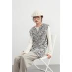 ベスト ジレ バラ柄チェーンステッチ総刺繍ニットソーキーネックチュニックベスト レディース