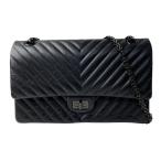 美品 シャネル CHANEL レディース ソーブラック シェブロン 2.55 Wフラップ チェーン ショルダーバッグ 斜めがけ クロスボディ
