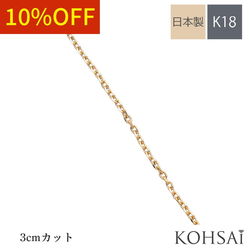 【最大2,500円オフCP!PT3倍】角小豆チェーン 【3cmカット】 アクセサリー パーツ k18 カット済 シンプル 地金 チェーン だけ 18k 18金 K18YG WG イエローゴールド 日本製 ハンドメイド ネックレスチェーン ネックレス ブレスレット イヤリング ピアス 素材