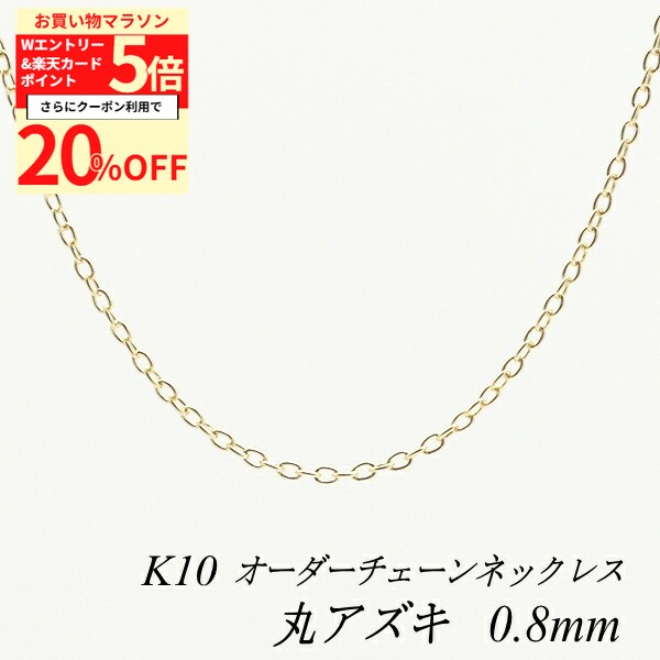 【20%OFFクーポン+Wエントリー&楽天カードでP5倍23:59まで】10金ネックレス 丸アズキチェーン 0.8mm 長さ選べるオーダーチェーン 40cm〜120cm 45cm 50cm 55cm 60cm 10金 K10 10K あずき 小豆 180日間お修理保証