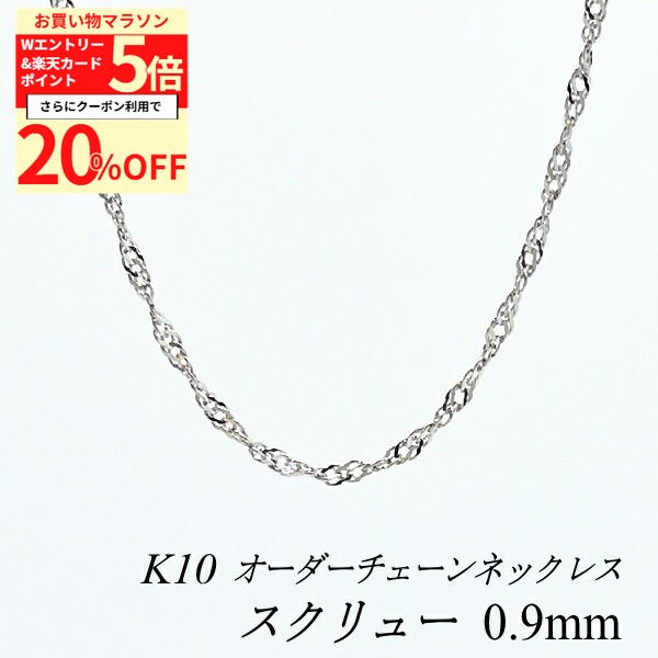 【20%OFFクーポン+Wエントリー&楽天カードでP5倍23:59まで】10金ネックレス スクリューチェーン 0.9mm 長さ選べるオーダーチェーン 40cm〜120cm 45cm 50cm 55cm 60cm 10金 K10 10K ホワイトゴールド 180日間お修理保証