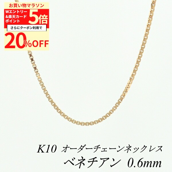 【20%OFFクーポン+Wエントリー&楽天カードでP5倍23:59まで】10金ネックレス ベネチアンチェーン 0.6mm 長さ選べるオーダーチェーン 40cm〜120cm 45cm 50cm 55cm 60cm 10金 K10 10K ピンクゴールド ベネチアン 180日間お修理保証
