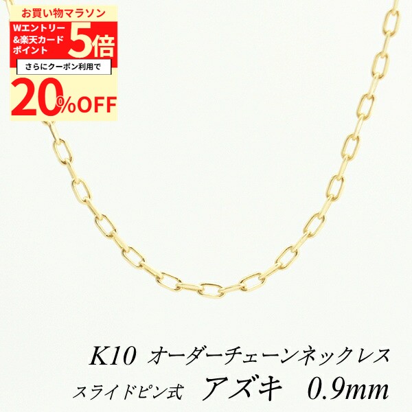 【20%OFFクーポン+Wエントリー&楽天カードでP5倍23:59まで】10金ネックレス アズキチェーン 0.9mm スライドピン式 長さ選べるオーダーチェーン 40cm〜120cm 45cm 50cm 55cm 60cm 10金 K10 10K イエローゴールド 180日間お修理保証