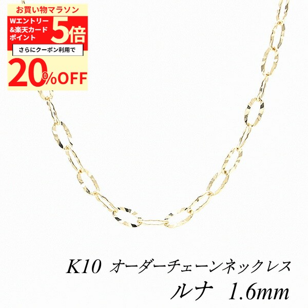 【20%OFFクーポン+Wエントリー&楽天カードでP5倍23:59まで】10金ネックレス 10金 K10 10K ルナチェーン 1.6mm 長さ選べるオーダーチェーン 40cm〜120cm 45cm 50cm 55cm 60cm イエローゴールド ロングネックレス 10金 ネックレスチェーン k10