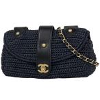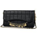 シャネル CHANEL チョコバー チェーン ショルダーバッグ チャーム ショルダーバッグ レザー ブラック レディース 中古