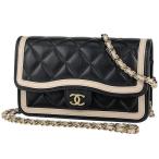 シャネル CHANEL ウルトラステッチ チェーン ウォレット ココマーク ショルダーバッグ レザー ブラック レディース 中古