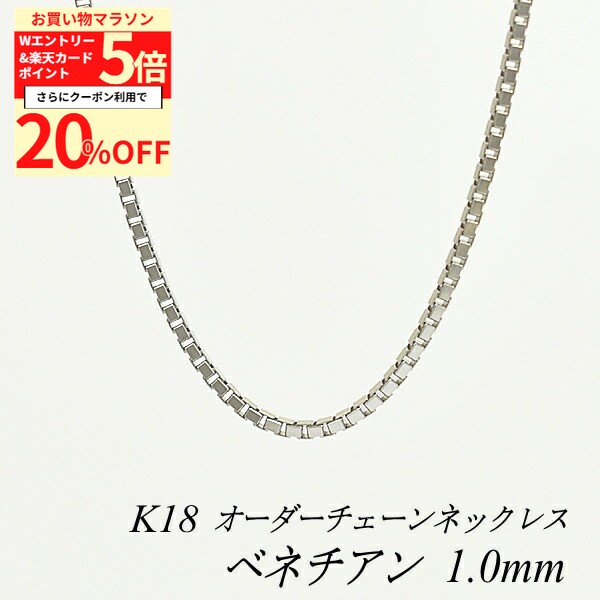 【20%OFFクーポン+Wエントリー&楽天カードでP5倍23:59まで】18金 ネックレス ベネチアンチェーン 1.0mm 長さ選べるオーダーチェーン 40cm〜120cm 45cm 50cm 55cm 60cm 18金 K18 18K ホワイトゴールド 180日間お修理保証
