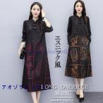 ワンピース ロングワンピ チャイナドレス レディース ロング丈 スタンドカラー 長袖 ゆとり 綿混 マキシ丈 レトロ チャイナ風 エスニック風 柄 Aライン