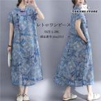 レディース 綿麻 チャイナドレス ワンピース 半袖 ドレス ロング丈 花柄 民族風 ナチュラル ゆったり 体型カバー カジュアル フォーマル 復古 チャイナ服