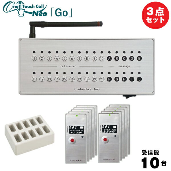 【セット商品】ワンタッチコール Neo 「Go」 基本3点セット LRE-D(受信機)×10・ LTR-D(送信機)×1・WCH(充電スタンド)×1 | 日本製 コールチャイム ワイヤレスチャイム 呼び出しボタン 呼び出しベル 業務用 受信機 オフィス用品 呼び出し |