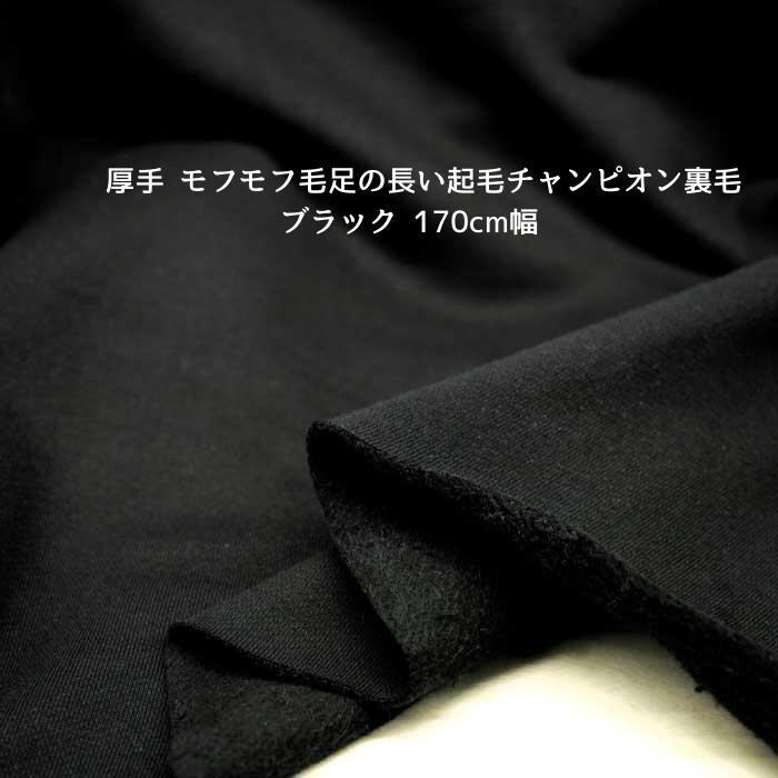 ニット生地 厚手 モフモフ毛足の長い起毛チャンピオン裏毛 ブラック 170cm幅 日本製 50cm単位の価格 スウェット パーカー トレーナー レディス メンズ 子供服 手芸 クラフト 生地 布 屋 さん 通