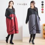 チュニック ワンピース 長袖 カジュアル レディース 婦人服 秋 冬 L LL 大きいサイズ 黒 茶 カーキ 赤 通勤 日常着 重ね着 保育士 ワンピース356 TRUBE N83-023