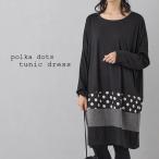 チュニック ワンピース レディース 大きいサイズ Aライン 配色 ゆったり 着れる ナチュラル かわいい モノトーン カットソー 黒×水玉 プリント